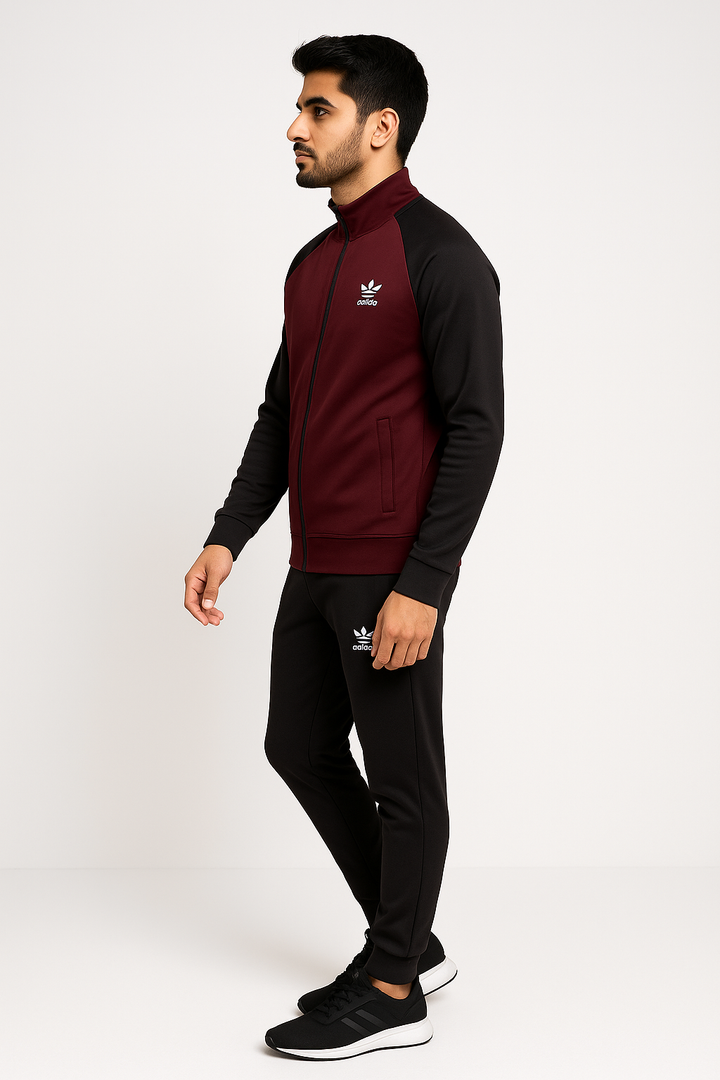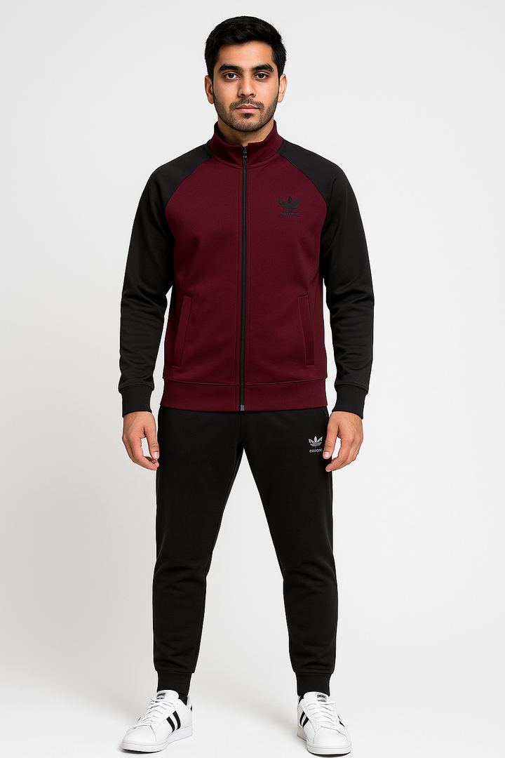 Adidas Men’s Scuba Maroon & Black – Sports Tracksuit